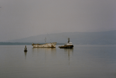 Galatea being towed by the tug Wallasey, 9th June 1993